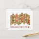 På framsidan av detta vykort finns en bild av färglös vintage Mahjong-plattor och text där Majhong party-tiden tillkännages (utbytbar). I motsatt riktning anpassaden du text för din specifika händelse.
