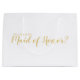"Kommer du att vara min Maid of honor?" Modern Script White och Guld Maid of honor Frieri Gift Bag med titeln "Kommer du att vara min Maid of honor?" i guld moderna skriptteckensnitt stil på vit bakgrund. Obs! Folidinformationen simuleras i teckningen. Ingen faktisk folie kommer att användas vid skapar av denna produkt.