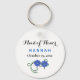 Denna moderna typografinyckelkedja med blåa blommor gör perfekten bröllopsförmån för maid of honor i bröllop! Anpassa med namn i maid of honor och ditt bröllop-datum. Bakgrunden färg i nyckelkedjan kan ändras så att den passar dina önskemål.