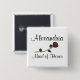 En dekorativ, långvarig, röd ros, är fokus för den här utformningen för dina bröllopsfester. Underbar för eventuella händelser före bröllop. Anpassa genom att ersätta exemplet namn och titeln till kostym. Det finns även runda knappar med mindre text. Se avbildningslänken nedan. com.
