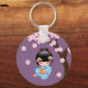 Maiko Kokeshi Doll - Blue Kimono Geisha Girl Nyckelring
