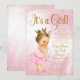 Prinsessa baby shower genom post inbjudan med söt brunett prinsessa babyflicka som bär en skrynklig rosa tutu och guld krona med en pärlhalsband på en vacker rosa och guld bakgrund. Denna eleganta rosa och guld post baby shower inbjudan är lätt att anpassa för ditt evenemang genom att lägga till dina detaljer i den typsnittsstil och färg och formulering du väljer.
