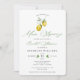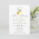 Behålla färsk och enkel med eleganten inbjudningskort för möhippan. Med en skarp vit bakgrund har designen en liten, detaljerad citron i mitten, omgiven av en liten grej. Ett fåtal spridda citronskivor tillför ett ljus och uppfriskande känsla utan att övervältra enkelheten i designen. Den moderna, minimalistiska typografin presenter på ett elegant sätt händelsedetaljerna och balanserar lekfull charm med förfinad sofistikering. Denna inbjudan fångar det centrala i ett ljust, glatt firande på ett rent och underskattat sätt.