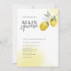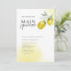 "Hon hittade sin huvudsakliga klämning" Firar den brud som ska bli med den minimalistiska citronteman inbjudningskort för möhippan, med en vattenfärgssväng med två citroner och blommor.