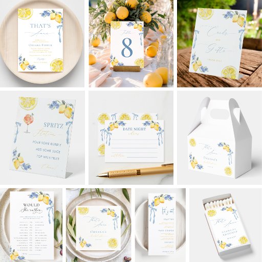 Main Squeeze Lemons Blue Italy Möhippa Inbjudningar