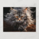 En nära porträtt av en Maine Coon-katt med slående orange ögon, fångad i en dramatisk situation. Katten är lång och flyter päls och blåses av en osedd vind som skapar en känsla av rörelse och energi. Kattens blick är intensiv och fokuserad, vilket tyder på en känsla av vaksamhet och makt. Bakgrunden är en mörk som är otydlig, som belyser kattens egenskaper och skapar djupsinnet. Perfekt gåva till Maine coon älskare.