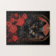 Black Maine Coon-katt med röda blommor art nouveau stil