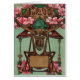 Månad av maj. Zodiac undertecknar Gemini. Härligt konstverk för vintageart nouveauastrologi, med art décopåverkan som publiceras som en vykort i 1911. Mycket färgrikt med födelseblomman, smaragdfödelsesten, ljusa rosa- och gröntfärger och kvarterbrev.