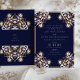 Majestätisk Midnatt Blå och Guld Blommig Bröllop Inbjudningar
