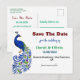 Majestätisk Påfågel Bröllop Spara Datum Postkort. Du är fri att anpassa kortet efter dina behov.