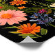 En svart häst springer graciöst genom en färgrik blomsterfält på en solig dag, uttrycker frihet och vitalitet. Den livfulla scenen utstrålar naturlig skönhet, frid och livlighet, fångar ett upphetsande ögonblick utomhus.