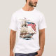Den här klara illustrationen har en stor segelbana med vit segelsegel som seglar genom frakten vinkara havet. Frakten visningar stolt en stor amerikansk flagga som symboliserar frihet och äventyr. I den detaljerade grafiken fångas havshistoriens kärna och prospekteringsandan upp, och den skapar som en perfekt för både nautiska entusiaster och patrioter.