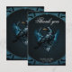 Majestisk svart raven sitta på ett ornat, stiliserat gren. Kombinationen av blommornas blåa och vita coola skapar en harmonisk kontrast till de varma guld-tonerna på näbben. På det hela taget förmedlar konstruktionen en känsla av styrka, elegans och mysterium