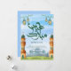 Featuring towering minarets under a bright blue sky, this card offers a grand and uplifting perspective. The watercolor textures and hanging lanterns create a festive and airy atmosphere.
