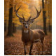 A majestic deer stands gracefully amidst a forest of autumn foliage. Notice the intricate details of its antlers and the vibrant colors of the fallen leaves.