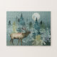 Majestic Elk in Forest Full Moon Watercolor Pussel