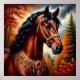 En fantastisk bild av en ädel häst som är försedd med svårsmälta dekorationer av guld och pärm, som ställs mot den pulserande bakgrunden av en höstskog, som innehåller fet färg och rymmande naturskönhet.