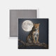 A powerful leopard with piercing yellow eyes and a sleek, spotted coat sits majestically on a stark, solitary branch. One paw dangles artfully across the center of the illustration, hinting at movement. Behind him, a vast, luminous harvest moon hangs in the inky night sky, casting an ethereal glow. Awesome magnet for anyone who loves leopards.