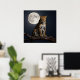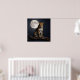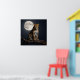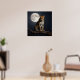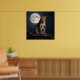 A powerful leopard with piercing yellow eyes and a sleek, spotted coat sits majestically on a stark, solitary branch. One paw dangles artfully across the center of the illustration, hinting at movement. Behind him, a vast, luminous harvest moon hangs in the inky night sky, casting an ethereal glow. Awesome poster for anyone who loves leopards.