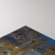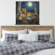 Leopard themed wall art. On the front is an illustration of a majestic leopard with fur like molten gold, laying on a cliff ledge bathed in ethereal moonlight. Intricate carvings adorn crumbling stone pillars, and bioluminescent flora casts a soft, otherworldly glow. The scene is rendered in a rich, textural oil painting style with thick strokes.