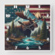 Majestic Moose between Mountain and American Flagg Fyrkantig Klocka
