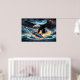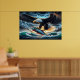 En stor örn sår i himlar och klumpar ihop en skakande fisk i sina vassa taloner. De rovgiriga och kraftfulla vindrutorna förmedlar styrka och ära i den här slående målningen.