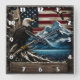 Majestic Örn Perched by Mountain and Flagga Fyrkantig Klocka