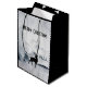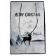 En presentväska med en vattenfärgad bild med en svart silhuettrut som står mellan vissa gräs träd. Grått Black and white neutralt färg.