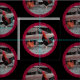 Vackra Tupp och Hen porträtt, omgivna av djup röd och inramad av svart linjer