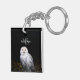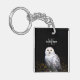 Fotografi av porträtt av majssnowy uggla som står på ett gren med ett personligt namn monogram över.