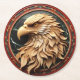 En träkarving av en regalörn, vackert utformad i ett cirkulärt ram.