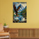 Den här levande bilden fångar det ögonblick då en stor örn utan vidare slår sig ned för att snurra en sjö-öring från det stilla vattenen i ett bergsområde sjö. Oljeuppgången kastar en mjuk glöd på topparna i snö, Prisinmiljön när omgivande gräs står högt och ostört.