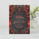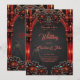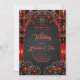 Majestisk torn med mörk blommor. Röda blommor och mörk symboliserar en förening av ljus och mörker, fullt av intensitet och skönhet, som perfekt fångar det unika i ett gotiskt bröllop.