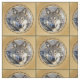 Vackra Grått Varg porträtt omgiven av brons/guld / brun färg och inramad av djup grönt linjer/