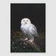 Fotografi av porträtt av stora snövrak uggla som står på gren.