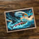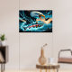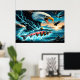 En regalörn slår ner, dess vassa taloner griper en skalande fisk mitt i luft. Den mäktiga fågeln visar sin jaktfärd i denna dynamiska målning.