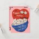 Vintageillustration dum, rolig, humoristisk bild med en stor skål popcorn med två söta kärnor som flyger genom luften. Ett roligt sätt att meddela er förlovning, speciellt för filmälskare!