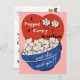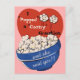 Lätt att anpassa bröllopsannonsering. Lägg bara till era namn och datum! Vintageillustration dum, rolig, humoristisk bild med en stor skål popcorn med två söta kärnor som flyger genom luften. Ett roligt sätt att meddela er förlovning, särskilt för filmälskare!
