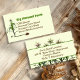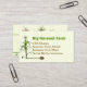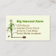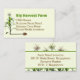Affärskort för gårdar med text på båda sidor. Design med majsstjälkar och spade. Blekgula kort har grön, fet text för gårdsnamnet. Lista evenemang eller specialiteter under titeln. På baksidan, lägg till mer information i stycketexten. Använd för att annonsera ett gårdsstånd eller bondens marknad eller annan jordbruksrelaterad verksamhet.