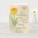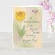 Ett kort med en tulpanblomma på framsidan som ger kondoleanser och stöd till de sörjande make på minnet av hans frus första födelsedag efter bortgången.