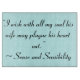 Börja din dag med den oförglömliga orden Jane Austen, allas favoritförfattare till romantik novels. Det här anpassadet är fullt utformat med ett citat från hennes "Sense and Sensibility", "Jag önskar med all min själ att hans fru kan plåga hans hjärta." ~ Sense och Sensibilitet. De av oss som någon gång har dumpats (eller gjutits upp!) av ett före detta älskare kan verkligen hålla med.