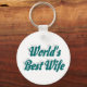 Nyckelring med världens bästa fru i 3D-text med blå grönt. Rund och fyrkantig nyckelring finns i flera storlekar.