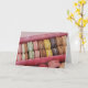 Makaroner i olika färg och smakämnen i en rosa box