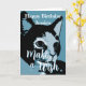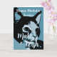 Cute personalized birthday card, ideal for cat lovers. The design features a pop-art style illustration of a black and white cat on a monochromatic blue background. The text "Happy Birthday Jessica" and "Make a Wish" uses modern and stylized fonts.