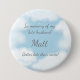 Denna morbida roliga knapp har en scen med himmelblå himmel, drömlika moln, gnistrande stjärnor och orden "Till minne av min avlidne make [namn infogas] Bättre sent än aldrig!" Perfekt för dem som väntade länge på en partner.