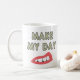 Make My Day is a sarcastic challenge to the viewer. It suggests the wearer welcomes the chance of a confrontation, because they will surely win. Contains the words and a snarky sneer below.