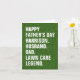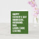 Det här humoristiska hälsningskortet är perfekt för Fars dag och är helt och hållet anpassade. Utformningen har en bild av gräs (en gräsmatta) och fetstil, vit typografi som kan anpassas. Det är stater "Lycklig Fars dag [Anpassat namn]. Make. Pappa. Gräsmatta Legend." Byt bara ut texten i mallen och lägg till ditt eget ord för att anpassa. hälsning i kortet kan också redigeras. Det står: "Du är en "hugg" över resten. Lycklig Fars dag. Kärlek från {Namn] xxx'. Detta kort är perfekt för alla far som kärlek ska (eller måste) ta hand om gräset eller gräsmatta. Eller om han har ett landskaps- eller gräsmattor eller en gräsmatta.