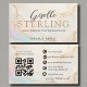 Höj ditt varumärke med det här lyxfärgade affärskortet för opalsten med mjuka klistermärken, varmt guld-accenter och elegant-manustypografi. Designad för konstnärer som tillverkar professioneller, innehåller en funktionell QR-kod för omedelbar portföljvisning och möte bokning, som skapar perfektens blandning av tidlös skönhet och modern bekvämlighet.