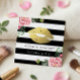Makeup Artist Guld Läppar Blommigt Black White Ran Fyrkantigt Visitkort