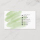 Det moderna konstnärer som minimerar affärskortet med chicens vattenfärgade grönt och svarta accenter. Trendiget för perfekt är utformat för makeup artist eller för något annat skönhetsrelaterat företag. Ett enkelt och professionell sätt att presentera ditt företag. Anpassa dina uppgifter för att skapa ditt eget unika affärskort.